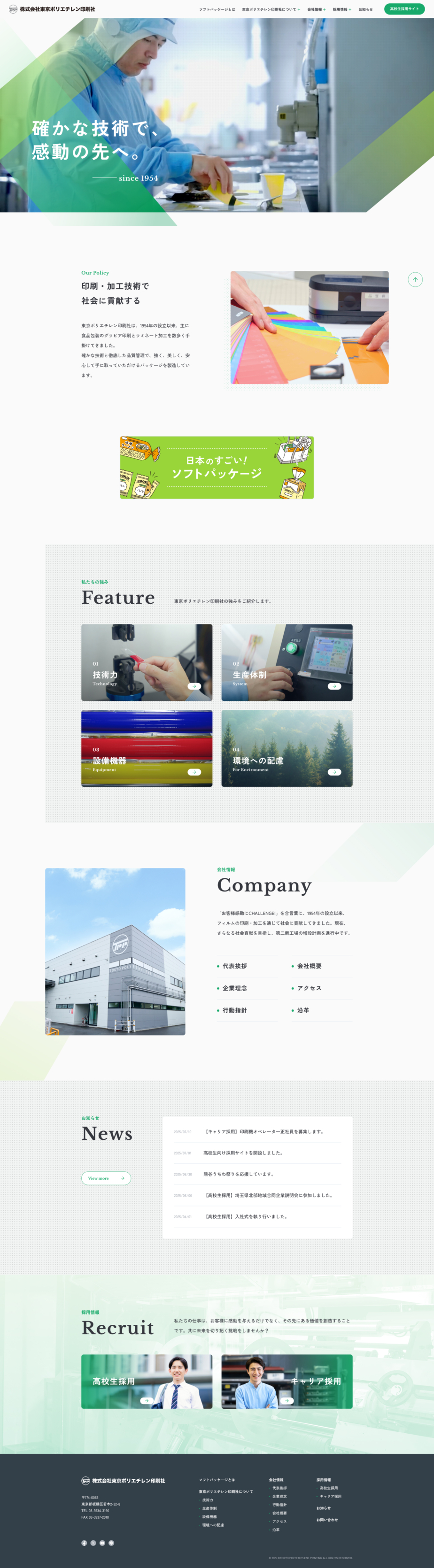 東京都板橋区に本社を構え、主に食品包装のグラビア印刷とラミネート加工を手掛ける東京ポリエチレン印刷社様。もともと使われていたホームページのデザインや内容を一新するため、リニューアルを担当させていただきました。