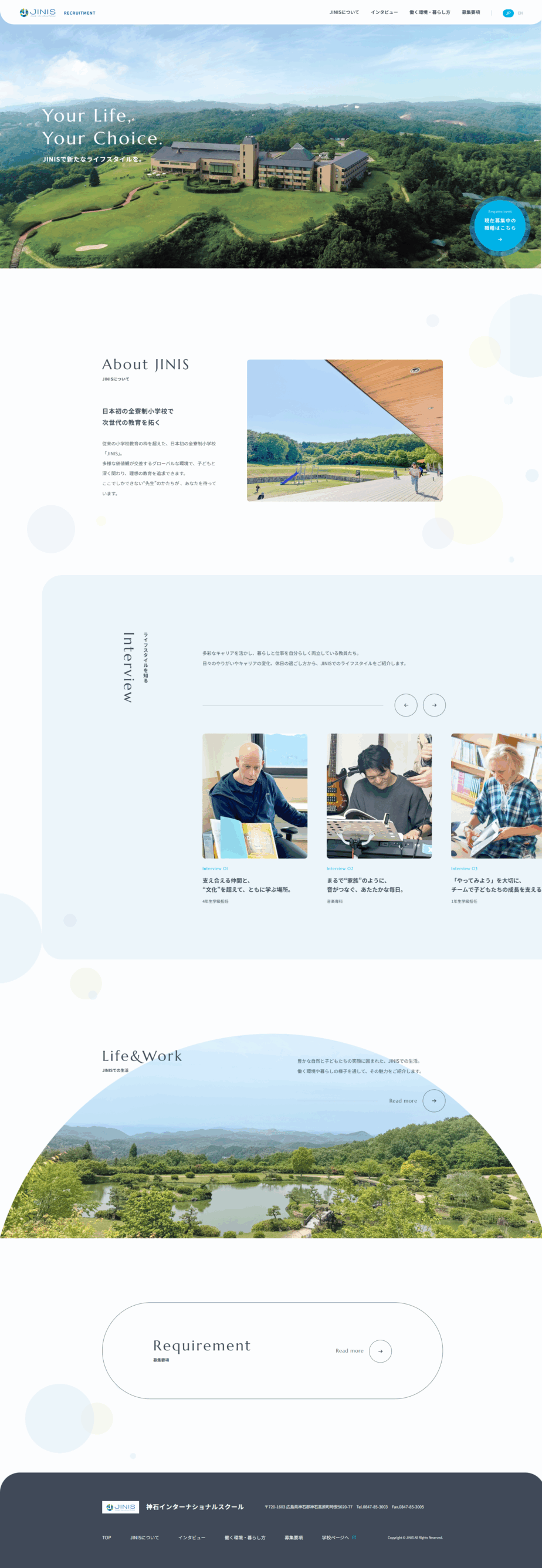 広島県神石郡にある日本初の全寮制小学校「神石インターナショナルスクール(JINIS)」様より、採用サイトの制作をご依頼いただきました。