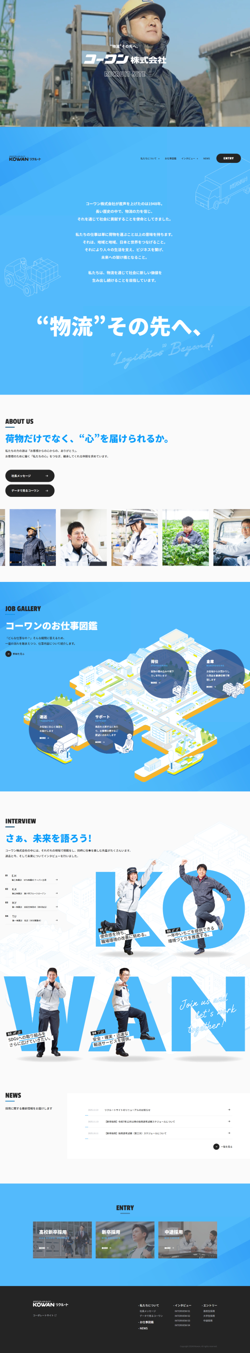 岡山県備前市を拠点に、港湾荷役・倉庫・運送・サポートの4部門で総合物流を担う「コーワン株式会社」様。1948年の創業以来、物流を通じて地域と社会を支え続けてきた企業です。今回は、高校生・大学生を中心とした採用活動の強化に向けて、リクルートサイトのリニューアルを行いました。